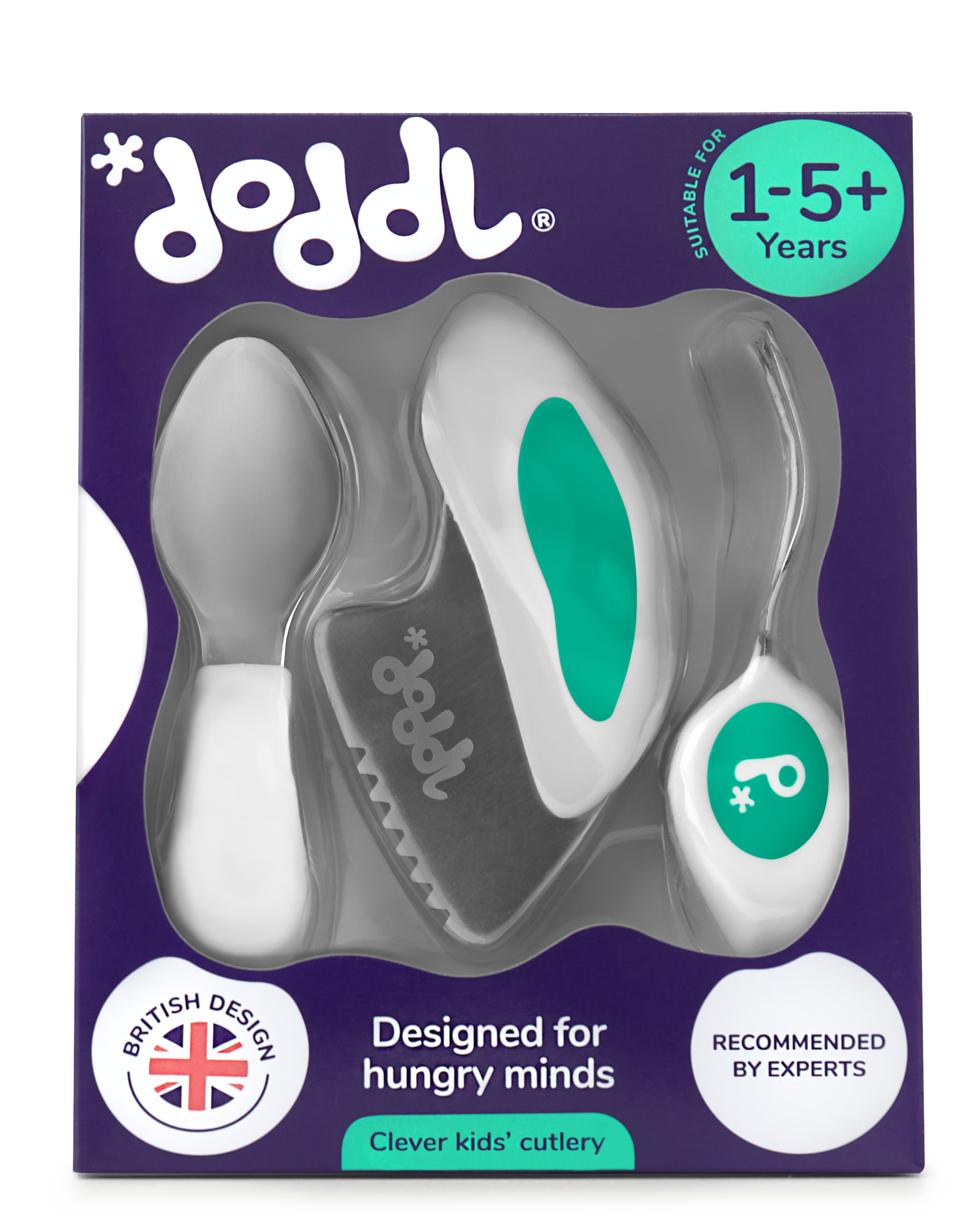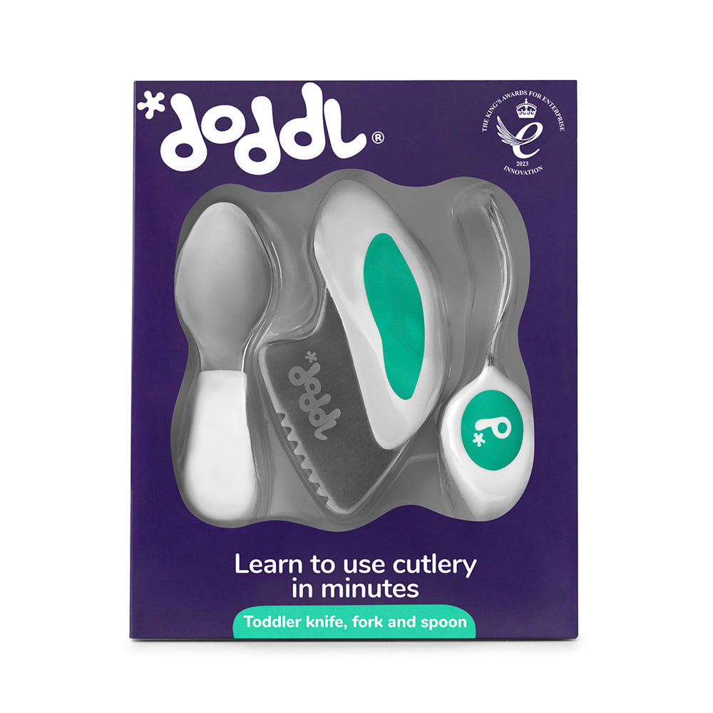 英国doddl快速拾取餐具 - 人体工学儿童学习餐具3件套 - 湖水绿