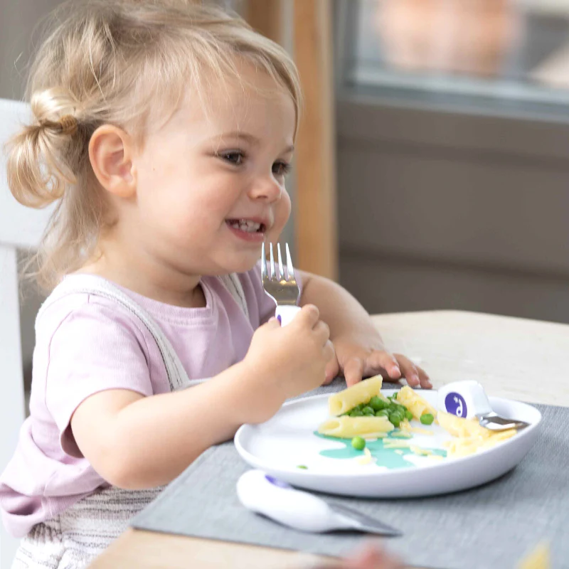 专为儿童设计: 宽阔的扁平前端便于用餐具取食,盘子的大部分空间都放在孩子面前。Splat 让孩子的视线集中到盘子中间,这是切菜的地方。